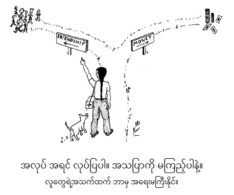 သင်ရဲ့စွမ်းဆောင်မှုတွေ၊ လုပ်အားတွေကြောင့် ငွေကြေးတစ်စုံတစ်ရာ ရချင်မှရမှာပါ။ ဆင်းရဲချမ်းသာမရွေး ရပ်ရွာလူထုကို စောင့် ရှောက်ကူညီနိုင်မှသာ သူတို့ရဲ့ မေတ္တာနှင့် လေးစားချစ်ခင်မှုကို ရရှိလာမှာပါ။ ဒါဟာ ငွေထက်အများကြီး တန်ဖိုးရှိပါတယ်။