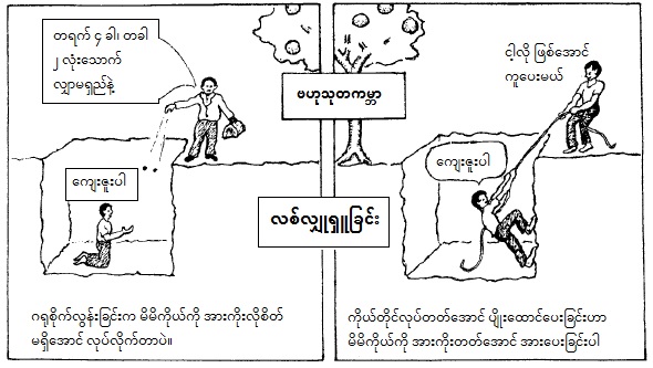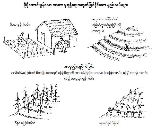 အချို့ကျေးရွာသားတွေ သူတို့ရဲ့ အာဟာရလိုအပ်ချက်ကိုဖြည့်ဆည်းဖို့ ကြိုးပမ်းအောင်မြင်ခဲ့တဲ့ နည်းလမ်းအချို့ကို ဥပမာအနေနဲ့ ဖော်ပြထားပါတယ်။ တစ်ချို့က မြန်တယ်၊ တစ်ချို့ကကြာတယ်။ သင်ကိုယ်တိုင် အလုပ်ဖြစ်မယ့်၊ အဆင်ပြေမယ့်နည်းကို စဉ်းစားရွေးချယ် ကြပါ။