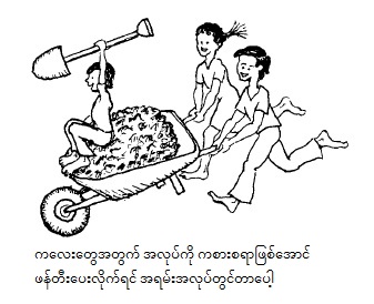 ကျေးရွာရေရရှိရေးစီမံကိန်း၊ ရွာလုံးကျွတ်သန့်ရှင်းရေးအစရှိသည့် လူထုစီမံချက်များသည် လူထုတစ်ရပ်လုံးပူးပေါင်းပါဝင်လာပါက လျင်မြန်စွာပြီးဆုံးနိုင်သကဲ့သို့ ပျော်ရွင်ဖွယ်ရာလည်းကောင်းမည်ဖြစ်သည်။ ကစားခုန်စား၊ ပြေးပွဲပြိုင်ပွဲ၊ အဆိုအက၊ အတီးအမှုတ်၊ အကျွေး အမွေးများ၊ ဆုချီးမြှင့်ခြင်းများ စသည်တို့ဖြင့် အလုပ်လုပ်ခြင်းမှသည် ကစားခြင်းဆီသို့ ပြောင်းလဲပေးနိုင်သည်။ စိတ်ကူးကြည့်ပါ။