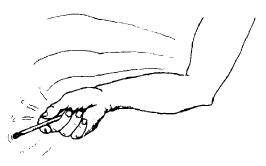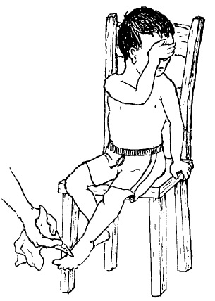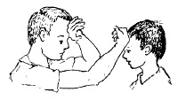 လူနာကို လက်တစ်ဖက်ဖြင့် မျက်လုံးမှိတ်ခိုင်းပါ။ ခန္ဓာကိုယ် နေရာများကို ဖြေးညင်းစွာ ထိပါ။ ထိခြင်းကို သိ၊မသိ မေးပါ။