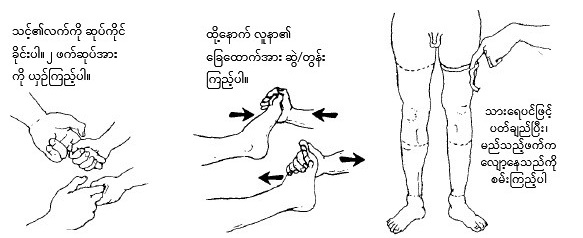 လက်နှင့် ခြေထောက်ကြွက်သားလျော့ရွဲခြင်းကို ကြည့်ပါ။