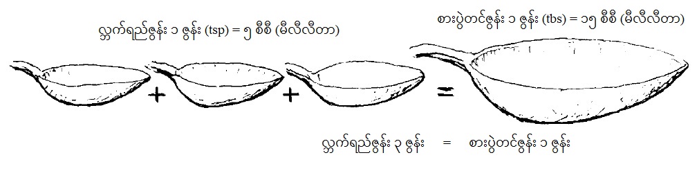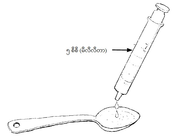 ဆေးရည်ကို လ္ဘက်ရည်ဇွန်း တစ်ဇွန်းသောက်ရန် ညွှန်းထားပါက ဆေးရည် ၅ မီလီလီတာသောက်ရန် ညွှန်းခြင်း ဖြစ်သည်။