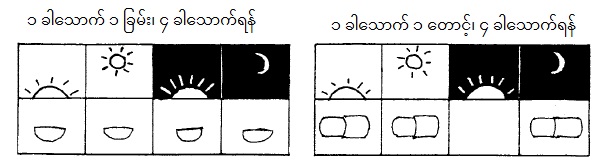 ၁ ၁/၂ လုံး = ဆေးတစ်လုံးနှင့် တစ်ခြမ်း