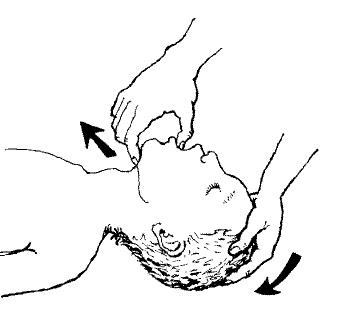 အဆင့်(၂) မျက်နှာကိုဦးခေါင်းဖက်သို့ဆွဲမော့ပါ။ မေးရိုးကိုအပေါ်ဖက်သို့ဆွဲထား၍ ဦးခေါင်းကိုနောက်စေ့ဖက်သို့တွန်းပို့ပါ။ အရာရာကို ညင်ညင်သာသာနှင့်မြန်မြန်လုပ်ဆောင်ပါ။