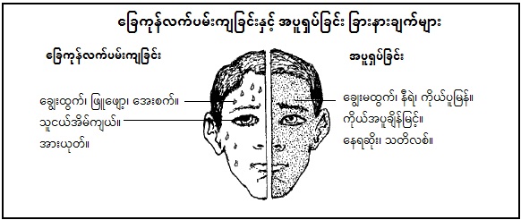 အဖျားချက်ချင်းမကျပဲ လူနာသတိမရ၊ မျက်ဖြူလန်၊ သတိလစ် အကြောဆွဲလျှင် ဆေးရုံချက်ချင်းပို့ပါ။