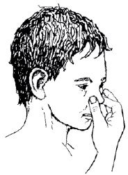 ၃။ လက်ချောင်းဖြင့် နှာခေါင်းကိုတင်းတင်းညှပ်၍ ၁၀မိနစ်ခန့်ကြာသည်ထိကိုင်ထားပါ။