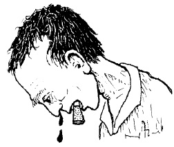မေးရိုးအောက် အကြိတ်သည် သွား၊ အာခံတွင်းနှင့်လည်ချောင်းပိုးဝင်ခြင်းကို ညွှန်ပြသည်။