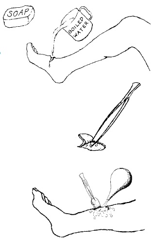 မသုံးမီ ရေနှင့်အဝတ်ကိုကောင်းစွာပြုတ်ပါ။ အသားစဆွေးများ၊ အရေခွံများကိုသတိကြီးစွာဖယ်ရှားပါ။ ဆေးလိမ်းပါ။ (Neosporin) ဒဏ်ရာဆိုးလျှင် ပိုးသတ်ဆေး (dicloxacillin ၊ Clindamycin (သို့) Ciprofloxacin) ပေးနိုင်သည်။