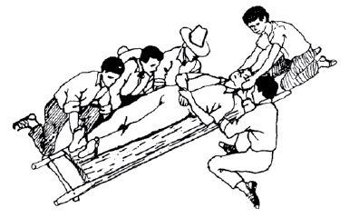 သတိရသည်ထိနေရာတွင်ပဲထားပါ။ မဖြစ်မနေရွေ့ပြောင်းပို့လိုလျှင် အထူးသတိထားကိုင်တွယ်ရန် (ဥပမာ လည်ပင်းနှင့် နောက်ကျောရိုး ကျိုးကြေ ဒဏ်ရာရလျှင် ရွေ့ပြောင်းမှုကြောင့် ပိုဆိုးစေနိုင်သည်။) ဒဏ်ရာနှင့်အရိုးကျိုးထိခိုက်မှုစစ်ဆေးပါ။ အရွေ့အပြောင်း သိပ်မလုပ်ပါနှင့်။ လည်ပင်းနှင့် ကျောကုန်းကို လုံးဝ မကွေး မညွတ်ရ။