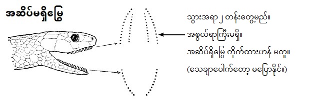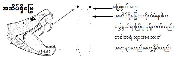 သတိ။ ။ မြွေအမျိုးမျိုးနှင့်တည်နေရာဒေသများသိရှိအောင်လုပ်ထားပါ။