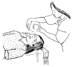 မျက်လုံးပိတ်ထားပြီး ဘယ်ညာ အထက်အောက်ကြည့်ခိုင်းပါ။ ထို့နောက် မျက်လုံးဖွင့်ထားပြီး အထက်အောက်ကြည့်ခိုင်းပါ။ ထိုအခါ မျက်ရည်များထွက်လာပြီး ဝင်ရောက်နေသောပြင်ပအရာများ ထွက်လာပါလိမ့်မည်။