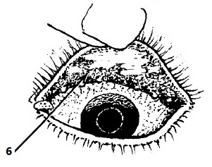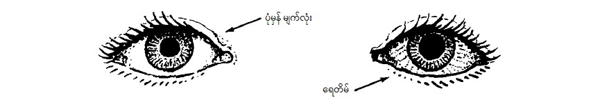 ပန်းရောင်မျက်လုံး (မျက်မှေးရောင်ခြင်း)။ အဖျားရောဂါ (မျက်မှေးယားယံခြင်း)။ မျက်ခမ်းစပ်ရောဂါ။ ဝက်သက်ရောဂါ။ |