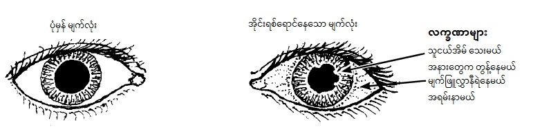 အရေးပေါ် ကုသရန် လိုသည်။ မျက်စိဆရာဝန်နှင့် ပြသရန် လိုသည်။