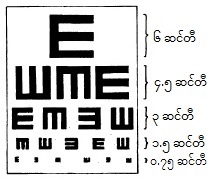 အရေးကြီးသောအချက် ကလေးတိုင်း (အသက် ၄ နှစ်ဝန်းကျင်)ကို အမြင်အား စောစီးစွာစစ်ဆေးသင့်သည်။ အင်္ဂလိပ်စာလုံး ‘E’ Chart ကိုသုံး၍ မျက်လုံးတစ်ဖက်စီ၏ အမြင်အားကို စမ်းပါ။ အကယ်၍ တစ်ဖက် (သို့) နှစ်ဖက်လုံး အမြင်အား ကျနေပါက မျက်စိဆရာဝန်နှင့် ပြသပါ။