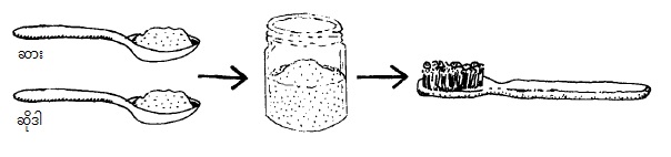 ရေနှင့်လည်း တိုက်နိုင်သည်။ နူးညံ့သည့် အရာတစ်ခုနှင့် ပွတ်တိုက်နိုင်သည်။ မီးသွေးမှုန့်၊ ဆားတို့နှင့်လည်း တိုက်နိုင်သည်။ ဆိုဒါမှုန့်နှင့် ဆား ဆတူရော၍လည်း သွားပွတ်ဆေးမှုနှု်အဖြစ် သုံးနိုင်သည်။ သွားပွတ်တံကို ရေ အရင် စွတ်ထားပါက ၎င်းသွားပွတ်ဆေးမှုန့်များကို အလွယ်တကူ ထည့်ကာ သုံးနိုင်မည်။