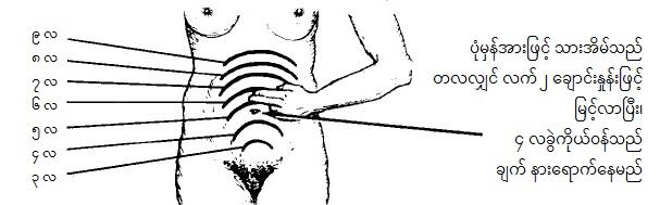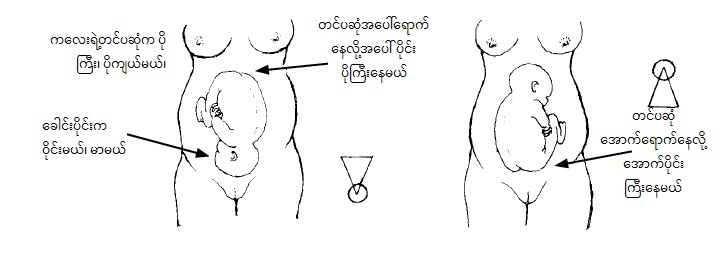 ကိုယ်ဝန်ရင့်လာသည်နှင့်အမျှ ကလေး၏ဦးခေါင်းသည် မိခင်၏ဆီးစပ်နေရာတွင်ရှိမှသာ ပုံမှန်မွေးဖွားရန်လွယ်ကူသည့်အနေအထား ဖြစ်သည်။ ကလေးအနေအထားမှန်ကန်မှု ရှိ/မရှိ စစ်ဆေးနိုင်ရန်။