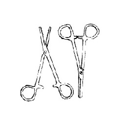 ချက်ကြိုးညှပ်ရန် (သို့) မွေးလမ်းကြောင်းမှ သွေးထွက်နေသော သွေးကြောများညှပ်ပိတ်ရန် သွေးကြောထိန်း ညှပ်နှစ်ချောင်း (hemostats)