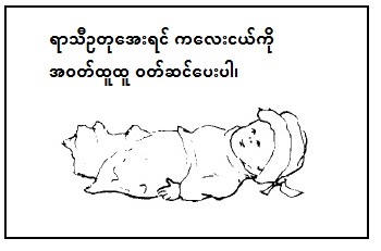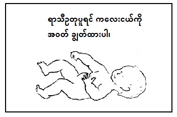 ကလေးကို လှဲချလိုက်စဉ်၊ အန်ထွက်တတ်ပါက နို့တိုက်ပြီးတိုင်း ကလေးကို ခဏပေးထိုင်ရမည်။