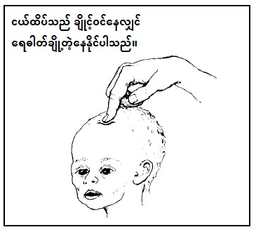 ငယ်ထိပ် ဖောင်းနေလျှင်ကလေးငယ်သည် ဦးနှောက်အမြှေးရောင် ဖြစ်နိုင်ပါသည်။