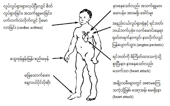 အကယ်၍ အသက်ကြီးသူတစ်ယောက်တွင် ချောင်းလည်းဆိုးမည်၊ အသက်ရှုကြပ်မည်၊ ခြေထောက်လည်း ယောင်နေမည် ဆိုလျှင် ၎င်းတွက် နှလုံးပြဿနာများ ရှိနိုင်ပါသည်။